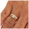 2pc. 6mm/4mm width Gold Tone Stainless Steel Wedding Engagement Ring Set for Women with Cute Inlay Cubic Zirconia. Crafted from carefully selected materials and finished brilliantly, this elegant wedding ring gets you lots of admiration you have always wanted at all occasions. This astonishing engagement wedding ring is for Women who desire to make a statement. The ring was designed for more comfortability and it has a great fit on the finger designated for wedding ring.The gold tone engagement wedding ring is made of solid hypoallergenic stainless steel.About Stainless Steel Jewelry: Stainless Steel has increasingly grown as a popular metal choice for jewelry. It has a good command of “beautiful” and “fashion” in various performances. It is often made without nickel and lead, so it is especially popular among those who may have metal allergies. This metal type is able to withstand moisture without tarnish or corrosion, which can last longer than other jewelries. All makes it a top fashion accessory to complement your wardrobe with the sleek, contemporary styling offered by our stainless steel jewelry.The stainless steel engagement wedding gold tone ring for women is also scratch, corrosion, and tarnish resistant.Comfort-Fit For Long Day Wear: the inner band for this engagement wedding has a slight doomed shape providing you the comfort to wear it all day long and even into the night. The comfort-fit design also makes this ring for women easier to squeeze pass through the knuckle, easier slide on and off your finger.Exquisite Style For Any Occasion: this stainless steel double 6mm width engagement wedding band is suitable for any event or occasion. You can wear it as an engagement, wedding band. You can even wear it as an everyday casual ring. This wedding ring for women will look good on you.Long Lasting Colour: This ring has a Ion plating which gives the engagement wedding ring more strength and durability on the outside and a high polish finish on the inside, it will withstand even the most careless of casual wear and still hold its luster.Please click on the Seller Information to enter our store to see the numerous products we have online and we wish you happy shopping experience. Thank you.