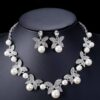 Beauty Silver Flower Pearls Bridal Necklace Tiara Earrings For Women Girls