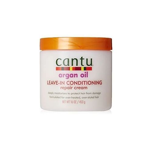 Argan Oil infused deep penetrating conditioning treatment made with pure Argan Oil and other natural ingredients to help protect hair from the damages of every day styling. When used daily, Cantu Argan Oil Leave-In Conditioning Repair Cream helps promote strong, healthy hair.Great for: relaxed, texturized, colored & permed hair.Benefits:Deeply moisturizes to protect hair from damageFormulated for over-heated, over-styled hairArgan Oil encourages shine, elasticity & growthStyling Tips:Apply Cantu Argan Oil Leave-In Conditioning Repair Cream daily to split ends or damaged areas. Comb through and let dry naturally.3 days post coloring apply Cantu Argan Oil Leave-In Conditioning Repair Cream generously to clean, damp hair. Cover hair with a plastic cap and apply moderate heat for 15 minutes.?Rinse and?style as usual.HOW TO USEDaily Styling ? Apply a generous amount of product to ends of damp hair and work toward roots. Comb through for even distribution. Do not rinse. Apply more to the ends of longer hair or problem areas.Leave-In Treatment ? Apply as directed for ?Daily Styling? and cover with a plastic cap overnight for maximum absorption and intense conditioning.Frizz Free Hair ? Apply daily to split ends or damaged areas. Comb through, and let dry naturally.Deeply moisturizes to protect hair from damageFormulated for over-heated, over-styled hairArgan Oil encourages shine, elasticity & growtHelps mend hair breakageHydrates and moisturizes with shea butter and natural oil