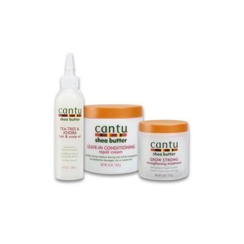 Formulated for dry or coarse hair Infused with 100 percent argan oil Stops and mends hair breakage Leaves hair soft, shiny, and manageable Formulated for dry or coarse hair, infused with 100 percent pure Argan Oil, Cantu Leave In Conditioning Repair Cream stops and mends hair breakage while leaving hair soft, shiny, and manageable.?Grow strong strengthening treatment strengthens fragile strands. Protects from heat damage. Perfect for pre and post chemical treatments. Made with pure shea butter. Tea tree and jojoba oil conditions and soothes the scalp while moisturizing strands and promoting healthy growth. Made with pure shea butter, tea tree and jojoba oil to replace vital oils revealing stronger, healthier hair with a natural shine while conditioning the scalp.