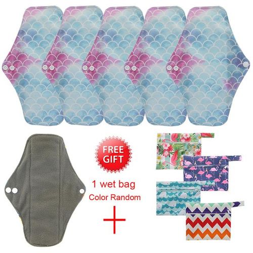 Dropship Cloth Sanitary Napkin Absorbent Reusable Charcoal Bamboo Cloth Pads 5Pack Sanitary Towel Size M Daytime Menstrual
