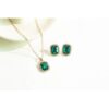 Matching Green Rhinestone Pendant Necklace: The necklace completes the set with a matching pendant, featuring the same regal green square rhinestone surrounded by dazzling white rhinestones. The classic green and gold color combination enhances the jewelry?s opulence, making it a standout piece for both formal events and everyday wear.
