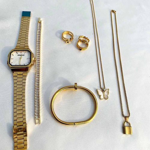 Fashion Class Top Trendy & Luxury Women’s Complete Gold Jewelry Set + Matching Wristwatch