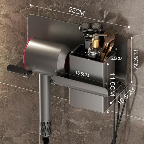 Hair Drier Bracket Bathroom Sh No Aluminum Wall Mounted Wash Basin Cosmetics Storage Rack For Dyson AcceorieProduct introduction:Multifunctional hair dryer frametexture of material:Surface treatment:Space aluminiumPlastic sprayingInstallation method:Applicable scenarios:Nail free /screw/patchBathroom/Toilet