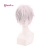 L-Email Wig Men Cosplay Wigs 30cm Heat Resistant Short Grey White With Pink Color Synthetic Hair Halloween Cosplay Wig