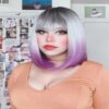 Ladies’ short straight hair with bangs, and students’ hair BOBO wig with colored green, purple and gold mechanism headgear.