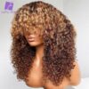 Ombre Colored Afro Kinky Curly Wigss With Bangs Full Machine Made Wigss Brazilian Remy Hair For Women 200%