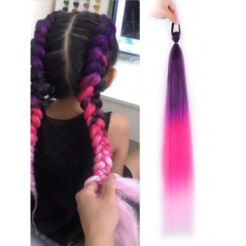 Snythetic Colored Extensions 24 Inch Extension With Tie Ombre Braid Ponytail Rainbow Festival Party