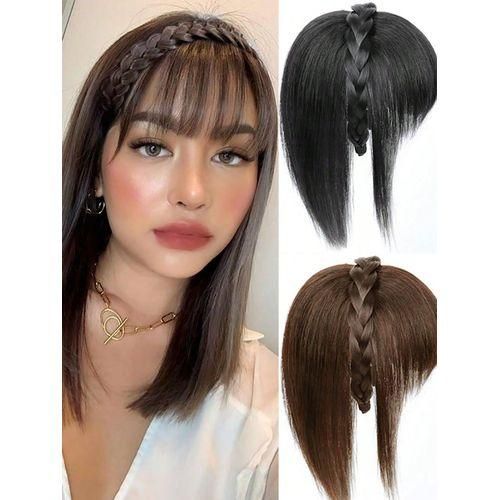 Synthetic Extension Clip In Hairpiece Natural Fake False Fringe Hair Topper Overhead Braids Bangs