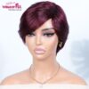 Wear to go 99j Burg Red Short Pixie Cut Wigs With Bangs For Women Brazilian Remy Hair Straight Bob Glueless Cheap Wigs