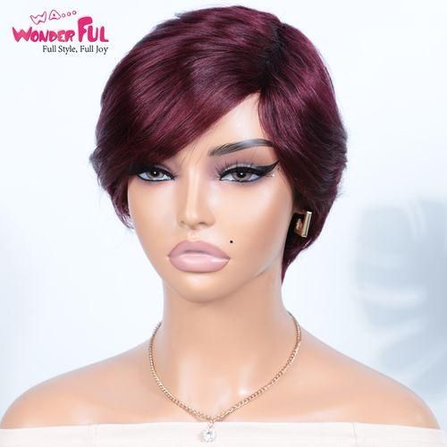 Wear to go 99j Burg Red Short Pixie Cut Wigs With Bangs For Women Brazilian Remy Hair Straight Bob Glueless 87,210.00 Save:44,370.00(34%)