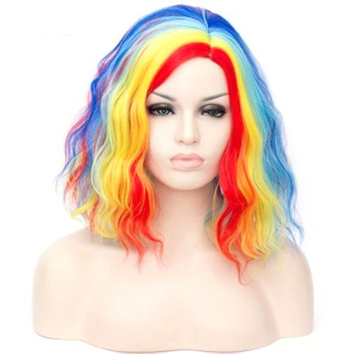Women Short Curly Hair Wigs Heat Resistant Fibre Multicolor Rainbow Wigs New,3 NO5115